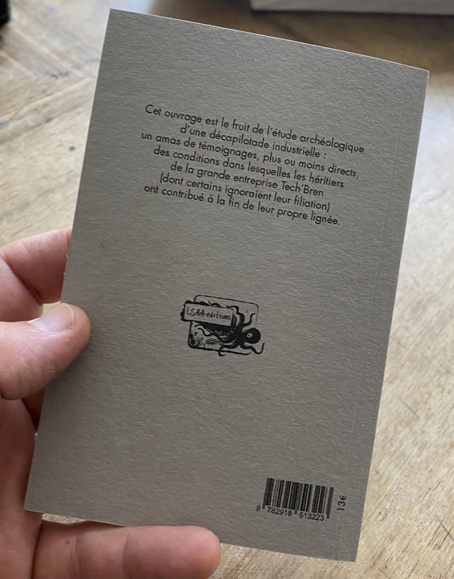 12 nouvelles pour relater le fruit de l'étude quasi-archéologique d'une décapilotade industrielle : un amas de témoignages, plus ou moins directs, des conditions dans lesquelles les héritiers de la grande entreprise Tech'Bren (dont certains ignoraient leur filiation) ont contribué à la fin de leur propre lignée.